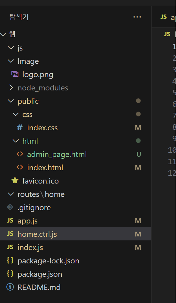 기본적인 서버 띄우기 라우트 을 처리 하고있다